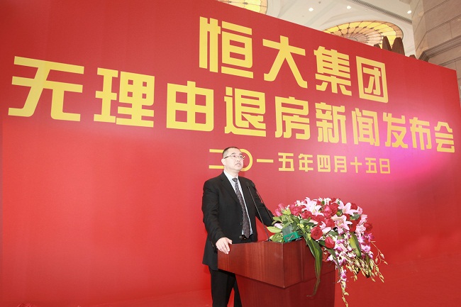4月15日,恒大集团在广州总部举行无理由退房新闻发布会,宣布自4月16日8时起正式实施“无理由退房”,覆盖恒大在全国范围内的所有楼盘住宅。