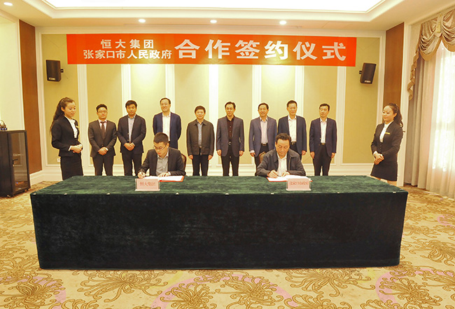 9月29日,恒大董事局主席许家印率集团高管团队赴河北省张家口,与张家口市领导深入会谈,双方签署太阳能光伏发电重大项目战略合作协议。