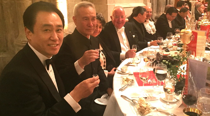 当天晚上,伦敦金融城市长叶雅伦在金融城市政厅为中国国家主席习近平举行隆重仪式和晚宴,董事局主席许家印等中英各界代表受邀参加晚宴。